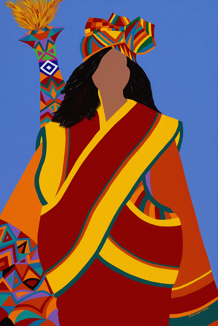 Ms. St. James’ art deals extensively with historical figures and cultures around the world. Diversity MBA Magazine thought she would be perfect for our Art & Culture digital issue, especially as it is coming out during Black History Month. She was gracious enough to send us images of several of her paintings and to submit to a Q&A with us.